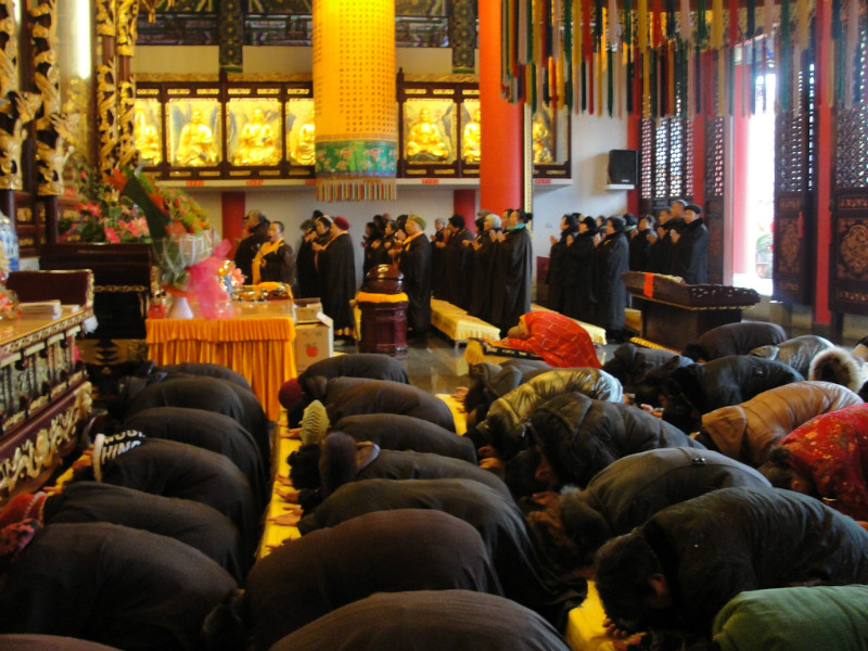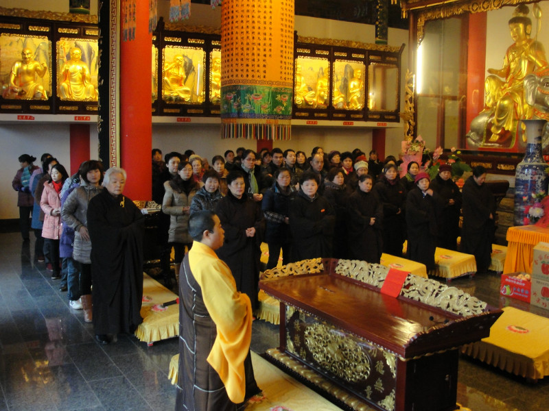 2012年(n©ián)12月(yuè)29日(rì)(農(nóng)曆十一(yī× )月(yuè)十七日(rì))恭逢西(xī)方極樂(yuè)世界教主'>±阿彌陀佛聖誕,本寺在大(dà)雄寶殿隆重舉行(xíng✔♠φ&)了(le)祝願法會(huì)。住持勝智法師£"÷(shī)禮請(qǐng)巫溪雲台寺惟曌法師(sh≥₹↕ī)為(wèi)主法和(hé)尚。近(jìn)2σ'≈00餘名居士善信随喜參加。大(dà)家(jiā)稱念聖号,虔£₩ 誠祈願,恭維世界和(hé)平,國(guó)泰民πα(mín)安,風(fēng)調雨(yǔ)順。整個(gè)法會(h<•÷uì)如(rú)律如(rú)法,殊勝圓滿。