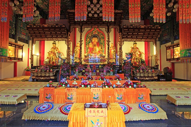 金(jīn)秋八月α≤♠$(yuè),丹桂飄香,諸佛歡喜,龍天吉祥,重慶甯化東華山寺于2011年(&Ω$nián)9月(yuè)25日(rì)上(shàng)午 σ&☆九時(shí)隆重舉行(xíng)了(le)大(dà)雄寶殿落成暨佛像開¶α≤(kāi)光(guāng)慶典法會(huì)。